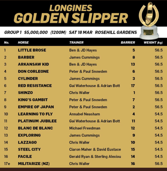 Sir Owen and the Go Bloodstock team are proud to have ownership in 6 runners contesting the Golden Slipper Stakes this Saturday. 3 of these runners are Group winning graduates of our Go Bloodstock Breeding program while 3 are products of our investment in the successful Newgate Farm colt partnership. We cannot wait for the…